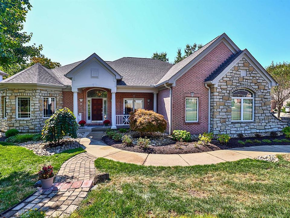 Large transitional ranch on 4124 sq ft. Owner put all the extras in this home when building it. Gourmet kitchen with granite CC, island counter bar opens up to Hearth Room 24x15! 1st floor study with bookcases, French doors. Large entrance with leaded glass transom, accent lights in the ceiling. Great Room with gas fireplace, built-in entertainment center, ceiling fans, 10 ft ceiling! Deck with gas line for grill. 1st floor laundry with sink & cabinets. 1st floor primary with deluxe bath, walk-in shower, whirlpool tub, 2 Corian sinks. Bay windows. Home offers double crown molding with craftsman beauty! LL with 20x17 family room with walkout to patio. 3 more bedrooms, one could be an exercise room. Lots of large storage closets. Huge storage room. Surround sound, updated alarm system. HVAC 2023, roof 2025. Backyard is very private with extra lot manicured by the HOA. Perfect for easy living!