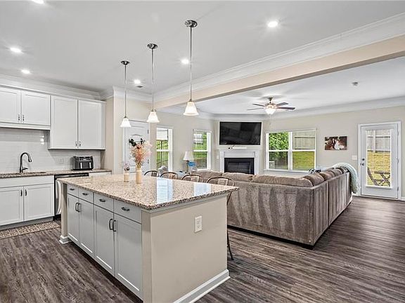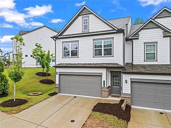 Welcome to this well-maintained end-unit townhome in the desirable Concord community! Built in 2022, this 3-bedroom, 2.5-bath home offers a comfortable and functional layout. The open-concept main level features a modern kitchen with granite countertops, stainless steel appliances, and plenty of cabinet space. The living room includes a cozy fireplace and opens to a private back and side yard-great for both relaxing and entertaining. Upstairs, the spacious primary suite includes a walk-in closet, dual vanities, and a tiled shower. Two additional bedrooms and a full bath provide flexibility for guests, a home office, or additional living space. Additional features include a two-car garage, low-maintenance yard, and a quiet, walkable community with sidewalks and dog stations. Conveniently located between Woodstock and Roswell, with easy access to schools, shopping, and more. This move-in ready home offers great value in a great location!