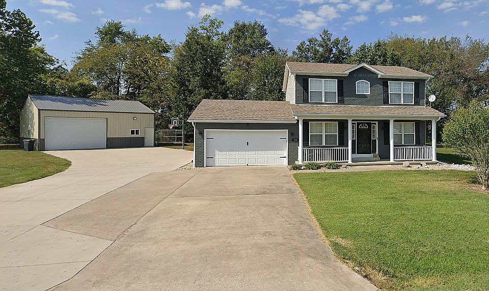 5x29 covered porch, 12x16 deck, 2 car attached garage, 32x32 pole building w/power and water