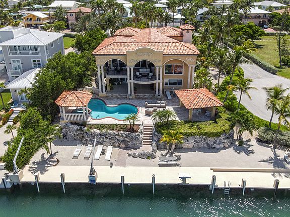 Oceanfront Mediterranean Estate. Stunning Ocean Views from 2 master suites! and all living areas. Boats up to 125 feet can dock here with a 10 foot of deepwater draft. This beautiful home is built on a large parcel of land with lush tropical landscaping, large resort style swimming pool and a beautiful covered jacuzzi overlooking open water and gazebo. The home has a Large open floor plan with soaring ceilings on the upper level and additional living areas on the lower level. Two bedrooms are set up as Dens. A Spacious professional kitchen with double ovens with warming drawer and 6 burner Dacor Stove, Gagganu fryer, additional freezer and extra refrigerator in the laundry room. Elevator with a 2 car garage. Classic elegance and and a one of a kind cul-de-sac property in Duck Key.