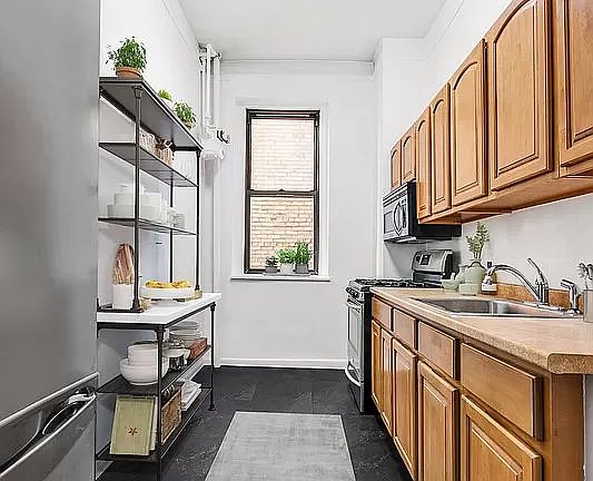 This serene one-bedroom home exudes warmth and prewar character, with a generous layout and extra-tall ceilings that imbue a feeling of airiness and comfort. Lovely hardwood floors, in excellent condition, extend throughout the home. A convenient entry foyer holds a large closet big enough for your coats, shoes, and general storage needs, while the large, windowed galley kitchen features ample counter space and cabinetry. Pretty crown molding caps soaring ceilings in the living room, which is large enough to accommodate a full living room set and a dining table with space to spare. The king- or queen-sized bedroom is a peaceful nest overlooking the courtyard with double exposure windows and another large closet. 359 Fort Washington is a stately pre-war building, with an impressive lobby and meticulously maintained common areas including a laundry room and bike storage. There is a live-in super and elevator. Situated in beautiful Hudson Heights, this pet-friendly cooperative is surrounded by bucolic parks and green spaces including J. Hood Wright Park, Bennett & Fort Tryon Parks, and the Hudson River Greenway, as well as countless fine eateries and shops. Conveniently located next to the A express train and the GW Bridge, residents can commute within the city quickly, or easily escape for a weekend. Showing now!