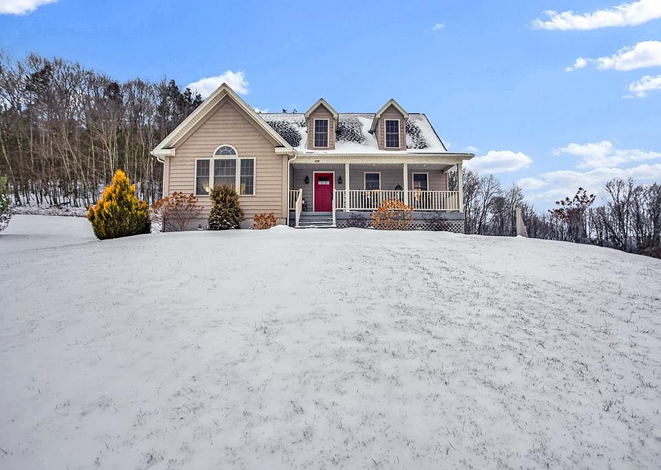 Stunning 4 bedroom, 4 bathroom home on 2.5 acres in Hills Creek Estates! This gorgeous Cape Cod style home boasts an easy first floor floor plan to include a cozy living room, kitchen/dining combo, laundry, half bath, and primary bedroom with full bathroom and walk-in closet. The second floor offers a lovely view overlooking the living room and offers two bedrooms and a full bathroom. Finishing off this lovely home is a bedroom in the basement complete with its own full bathroom. The two car garage is spacious with concrete floors and access to the utility room. Outside is like a paradise with an inviting covered back patio with a view for miles and wooded area to see wildlife. Make your appointment today!