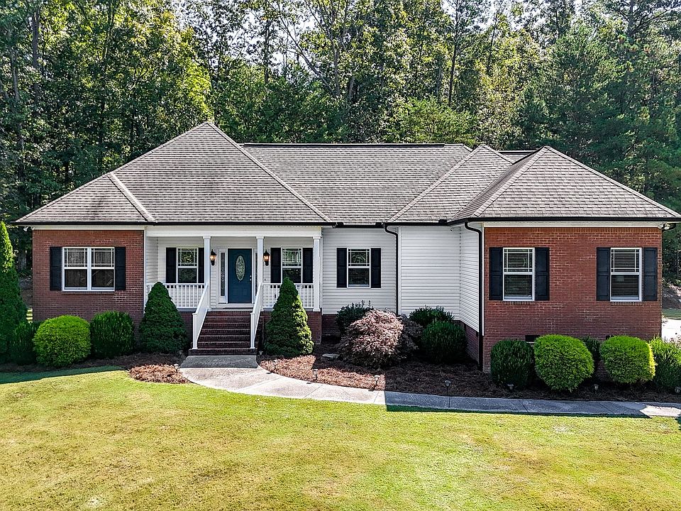 Welcome to your private retreat- where everyday living feels like a getaway. Located on just over four (4) private acres of land with a beautifully landscaped front yard, this thoughtfully designed home provides the ultimate privacy with both indoor and outdoor spaces made for relaxing, entertaining, and enjoying nature. This four bedroom home offers stunning hardwood floors throughout with a perfect blend of comfort and style. Step inside to discover a spacious family room with open concept living space featuring custom built-ins on both sides of a stylish framed ship lap gas fireplace with natural stone surround. The expansive windows provide picturesque views of the front lawn while the adjacent dining room overlooks a wooded spacious backyard with double doors leading to a generous 16 feet by 10 feet deck, perfect for entertaining guests while enjoying outdoor space and grilling, yielding the ultimate privacy with a serene and private retreat feel. The heart of the home, the kitchen, is designed with beautifully appointed white cabinetry throughout, gorgeous granite countertops, modern stainless steel appliances and custom recessed lighting. This home features an oversized primary suite on the main level of the home with large closet and full en suite bathroom complete with double vanity, brushed nickel fixtures and ceramic tile. A dedicated laundry room just off the primary suite, offers plenty of space for storage. The two additional generously sized bedrooms with spacious closets, share a well-appointed full bath. Moreover, on the second story of the home, you will discover a bonus room that provides a multi-purpose use, yielding flexibility as a fourth (4th) bedroom, home office, or teen suite. Awaiting you outside, you will find even more. In the front yard is the unique charm of wooded spaces with a custom pea gravel fire pit with a shaded sitting area under mature trees. As if this this not enough, steps away from your attached two car garage to the side of the home is a 40 foot by 40 foot free standing building complete with four commercial grade oversized garage doors that can serve as additional storage, a separate workshop and ample parking for additional automobiles, ATV's, RV and Boats. Whether you're hosting guests, working remotely, or looking for a peaceful escape, this home has everything you need- and more!