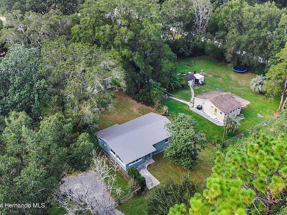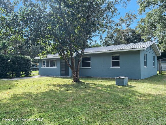 Active with contract accepting backups. Don't miss out on this absolutely adorable home in Masaryktown! This gem has a fenced yard on a 0.19 acre lot. The huge 2-car garage is detached, and there's plenty of room inside to add a workbench or shelves for storage. Built in 1957, it was constructed out of concrete with durability in mind. The metal roof was replaced in 2018, and there's fresh paint inside and out. Through the covered front entryway, you'll find an open floor plan with beautiful laminate flooring in the living spaces and a few key rooms. Whether you're playing a hand of Uno or snuggling up to stream your favorite movie, you'll love relaxing and entertaining in the living room. The kitchen has everything you need to whip up a snack or your favorite meal, including sleek stainless steel appliances, Formica counters, and bright cabinets. There's a large bonus room that provides tons of flexibility to the floor plan; it could be a 3rd bedroom, a home office, a craft space or workshop, a home gym - the possibilities are endless! Both bedrooms share a full bath with a tub/shower combo, but there is also a half bath for added convenience. The utility room is also indoors, so you never have to worry about doing laundry in a hot garage again! Outside, the yard is plenty large enough to host a summer barbecue, or pets and little ones to play. The Masaryktown Community Center and Gail Workman Park are less than a mile away. The quaint shops and restaurants of downtown Brooksville are only a quick jaunt north. There's plenty to do nearby; Lead Foot City, Masaryk Winery, the Airport Farmers and Flea Market, and Anderson Snow Park all fall within a 10-mile radius. Plus, US-41 gives you easy access to Tampa and its amenities, as well as the international airport. The Suncoast Parkway isn't far, either. Make your appointment to view it today!