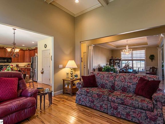 Beautiful traditional home. The Two story foyer welcomes you with gleaming hardwood floors and leads to an open concept. The formal dining room is the perfect spot for entertaining with an easy flow into the spacious great room The great room features a detailed coffered ceiling and cozy fireplace flanked by windows topped with transoms for added light. The kitchen offers great cabinet space topped with solid surface counters, pantry, and sliding doors leading to the covered porch allowing for a fabulous view from the breakfast area. Main level master has a detailed trey ceiling, full master bath with separate tub and shower plus a walk-in master closet. A guest bath off great room and walk-in laundry off the garage complete the downstairs. Upstairs you'll enjoy three bedrooms( one which would be a great bonus room) a full bath and a large walk-in attic for the perfect storage space. Enjoy the covered back porch overlooking a beautiful lawn with all sides of the this home completed landscaped and backing to woods for added privacy. Welcome home, call today for a showing!