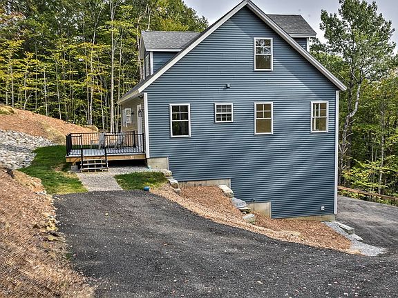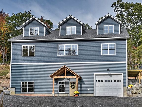 This stunning, contemporary Cape with a walk-out lower level is situated on 2.2 acres in the Hidden Lake Association. The association provides beach rights, a boat launch, boat slips/mooring & docks, an in-ground pool, a pool house with bathrooms & showers, and a playground. The impressive home features a modern kitchen that opens to the great room, adorned with white oak flooring throughout the first floor, high ceilings, recessed lights, and fabulous lighting over the center island kitchen. The kitchen boasts Quartz counters, soft-close cabinetry, and energy star stainless steel appliances. The breakfast nook has sliders leading to the trex deck with high-end railings and is hardwired for a gas grill. The first floor also includes a private laundry room, a primary en suite, and an additional half bath. The second level is spacious, light, and airy with 2 bedrooms split and an office space centered between them. There is also a beautiful full bath with a granite counter vanity, double bowl sinks, and tiled floor. The 16' high walk-out basement is perfect for a woodshop space, storage, or game room. This high-end home has it all and awaits its new owner. It would make an ideal home or a great second home. Stoddard, NH offers low taxes, and it provides an easy commute to Concord or Keene for those who enjoy the country and are looking for a well-built home.