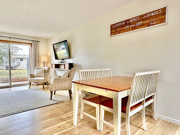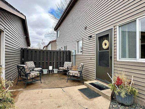 Maintenance-free living, main-level laundry, and plenty of green space! This cute condo has a bathroom on each level and two very large bedrooms upstairs with great closet space. The kitchen has been updated, and there are new floors throughout the main level. The living room looks out to the courtyard - green space. The roof is approx. 7 years old, siding is approx. 5 to 6 years old. The home is completed heated with electric. There is a window unit for a/c. Average utility bill for a family of 4 is $200/month.