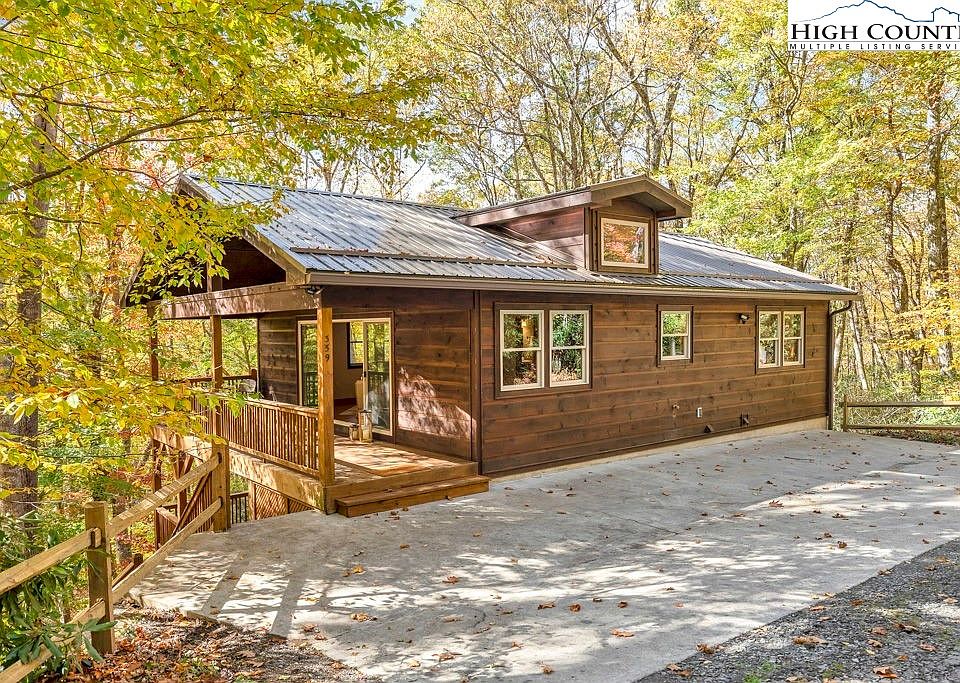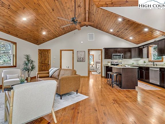 Great cabin nestled in the trees in the lovely community of Sorrento Falls. This 3 bedroom 2.5 bath home features an open concept great room with vaulted ceilings and a beautiful mixture of gorgeous tongue in groove and sheetrock with lots of windows and natural light that keeps the space feeling bright and airy. The kitchen features beautiful granite counters and plenty of cabinetry and island with bar seating as well as a dining area all open to the living room, wonderful for entertaining guests. There is also a half bath on this level that also houses the stack washer and dryer for convenience. The primary bedroom features a beautiful en suite bathroom with walk-in tiled shower and an amazing custom walk-in closet. The lower level features a second living area and kitchenette as well as the two guest bedrooms and a second full bath with walk-in tiled shower. Head outside onto either of your decks and soak in the fresh mountain air and natural setting that surrounds you while listening to the sounds of the stream running along the back of the property. Conveniently located between Blowing Rock and Boone, with paved roads up to the driveway and within minutes of Appalachian State University and App Ski Mountain and all of the outdoor adventures the High Country has to offer. Sorrento Falls is a short term rental friendly neighborhood, making this home an excellent option for full time living or as a vacation home or rental investment opportunity.