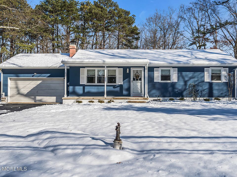 This charming and well-maintained ranch style home is situated on a fully fenced .68 acre lot that backs to woods, offering a private retreat for you to enjoy. The home features a covered front porch and an oversized attached two-car garage. Inside, luxury vinyl plank flooring flows throughout the foyer, living room, hallway and all three bedrooms. The living room provides a cozy centerpiece with its brick-surround wood-burning fireplace.In the kitchen, the breakfast area is detailed with decorative trim and features Anderson sliders leading to a large two-tier deck, perfect for outdoor gatherings. The primary bedroom offers direct access to the updated hall bath, which features newer vanity, ceramic tile flooring, convenience shelving and a custom-tiled shower.A major highlight is the the expansive full basement. There are three distinct areas: one side serves as the perfect hangout or recreation space, the other provides an incredible amount of storage and lastly a dedicated laundry area. With additional storage in the pull-down attic, this home offers the perfect blend of living space and utility. Schedule your showing today and see everything this versatile ranch has to offer!