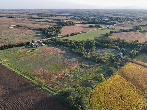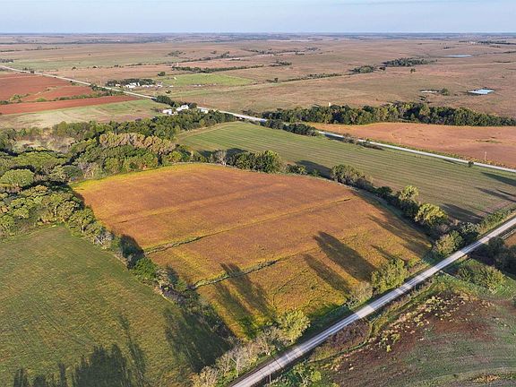 This 75 +/- acre property is located in northwest Lyon County just east of Council Grove, Kansas. It has 54 +/- cropland acres with 25 +/- DCP crop base acres primarily consisting of Class I Reading silt loam bottomland soils. The cropland acres have 1 to 7 percent slopes with well-kept terraces and field edges. The cropland soils have an NCCPI overall weighted average of 74. The remaining 21 +/- acres are mixed with warm and cool season grasses as well as mature hardwood timber. The timber is primarily mixed with burr oak, walnut, sycamore, and cottonwood trees. Bluff Creek winds throughout the property, providing year-round water and a natural travel corridor for wildlife. The diverse habitat with abundant food, water, and cover provides some of the best whitetail deer, turkey, upland bird, and waterfowl hunting opportunities that Kansas is known for! The property is located in Kansas Deer Management Unit 14, and has excellent whitetail deer and turkey numbers! The original two-story house on the property was built in 1880, and then added onto in 1971. The house totals 2,085 square feet with three bedrooms and one-and-a-half bathrooms, and also includes a two-car attached garage. The house has a metal roof, metal siding, quartz countertops, and the appliances are included with the sale. The property also has a 48'x72' farm utility building, a 36'x48' storage shed, and multiple grain bins. The property is located on a hard surface blacktop road with additional access from a well-maintained, year-round gravel road. Utilities include electricity, rural water, propane, telephone line, and a lagoon. Mineral rights are intact and will be transferred to the buyer at closing. There is an oral year-to-year cash rent farm lease currently in place. This property is well-suited for a family wanting a house on acreage with space to raise some livestock or have a small farming operation. Showings are by appointment only, and an agent must be present to enter the property.