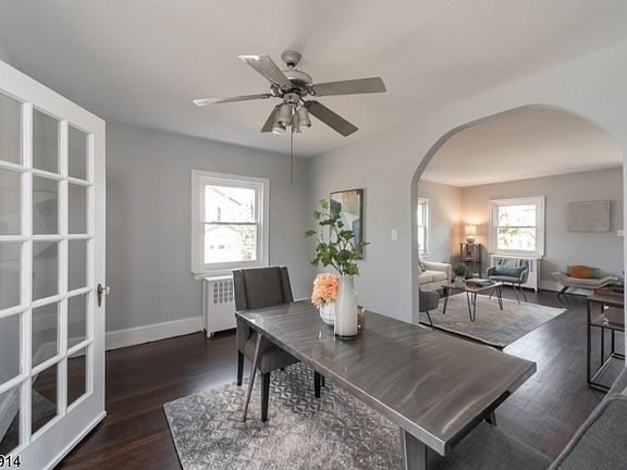 Potential galore in this quintessential tudor on quiet street in beautiful Nutley - freshly painted inside & out, new siding, refinished hardwood floors, 1 car detached garage. 1st floor boasts bright living & dining rooms, cozy eat-in kitchen w/ ample classic cabinetry, enclosed 3 season porch & a possible in-law bedroom (currently used as den) w/ bay style window. 2nd floor features master bedroom, plus 2 additional bedrooms (1 is captive) & a clean functional full bath. Large basement w/ vinyl plank flooring & toilet is full of potential for finishing. Easy NYC commute, being 4 blocks to park & ride @ Clifton Commons, NJ Transit 199/Jitney to Delawanna station (corner of Walnut/Kingsland). Bring your design eye & come make this sweet home your own! VIRTUAL SHOWINGS WITH LIVE REALTOR IS AN OPTION!