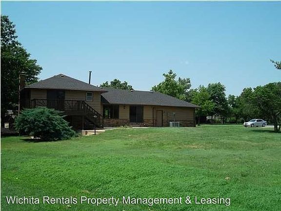 Goddard Schools - Very nice older home in an amazing area on the West side in Goddard school district. Home has been completely renovated, granite counter tops in kitchen and master bath. New HWT, carpet, wood laminate and high impact composite roof down to decking. Wonderful spacious layout. Rec Room has a gorgeous sandstone WBFP that will heat the whole house with another full bath. Nice walk out from the Rec Room to a patio. Master bedroom has his & her closets with sliding glass door that opens out to a deck. Master bath/hall bath has double sinks and tile tub/shower, wanes coat and linen. Kitchen has an island with an eating bar all granite & stainless steal appliances tumble tile & mirror tile back splash and it also opens out onto a patio area. There are 2 other finished rooms in the fourth level with closets. All neutral colors with white wood work and 6 panel white interior doors and louver closet doors. Over sized garage has a nice work bench and cabinets. Home is in area with its own little lakes.net No Pets Allowed (RLNE5289903)
