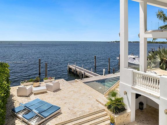 Coconut Grove's Crystal View Mansion boasts 80 ft. of open waterfront on Biscayne Bay, a private dock, & a heated pool with a swim-up bar. Stay fit in the gym, unwind in the spa with steam & sauna, or enjoy a game of pool or poker in the ground-level lounge. A gourmet chef's kitchen is showcased on the main level with a wine-cellar, home theater, waterfront formal living room with a proper bar, and incredible office/library. Floor-to-ceiling windows encompass the living areas. The primary bedroom is a sanctuary with two bathrooms and walk-in closets, including a rooftop terrace with breathtaking views. The property also features a full guesthouse, three-car garage, security camera and Savant system and an elevator. A private gate and beautiful coral-wrapped wall provide ultimate privacy.