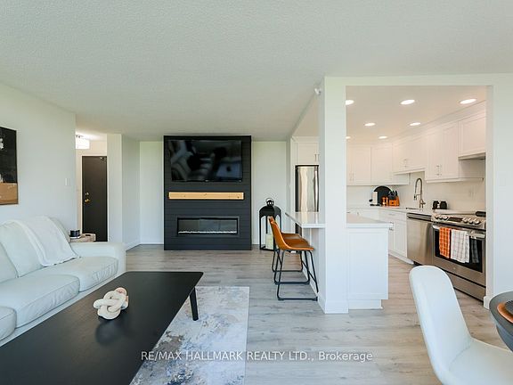 Nestled in the picturesque Mississauga Valley, this stunning 2-bedroom plus den suite has undergone a complete transformation, showcasing modern design and functional elegance. Every aspect has been meticulously remodelled, boasting updated plumbing, brand-new appliances, stylish flooring, renovated bathrooms, & a fresh coat of paint throughout. This spacious unit encompasses an impressive 1250 sq ft. of open concept living space, creating a seamless flow between the combined living and dining areas. An inviting electric fireplace, perfect for cozy evenings, highlights the living room. The contemporary kitchen features ample countertop space and a convenient breakfast bar, equipped with sleek stainless steel appliances that cater to both style and practicality. Large windows flood the space with natural light, enhancing the warm and welcoming ambiance. The den offers versatility, functioning as an ideal home office or an additional guest bedroom, accommodating your lifestyle needs. Included are 2 parking spots & one locker. Residents can enjoy access to exceptional amenities, including 24-hour security for peace of mind, an indoor pool, well-appointed change rooms, a relaxing sauna, comprehensive exercise facilities, & well-maintained tennis courts. The building also features a versatile party/meeting room, a billiards lounge for social gatherings, a barbecue area for outdoor grilling, & ample visitor parking to welcome friends & family. The condo fees cover utilities, such as heat, hydro, water, common elements, building insurance, & parking, ensuring a hassle-free living experience. This prime location offers unmatched convenience, with lush parks, scenic trails, efficient transit options, and the vibrant Square One shopping center all within easy reach. This is an incredible opportunity to establish your home in one of Mississauga's most sought-after locations, blending comfort, modern amenities, & a vibrant community lifestyle.