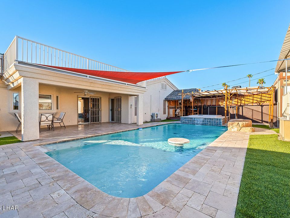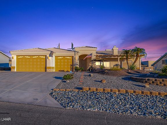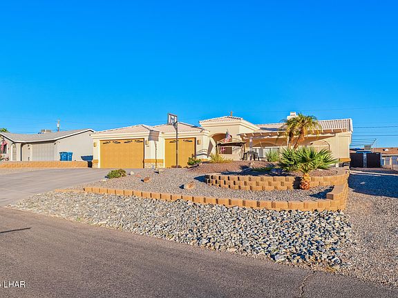Welcome to 3590 Outpost Drive — a beautifully maintained 3-bedroom, 2-bathroom home located in the heart of Lake Havasu City. The exterior has been freshly painted, giving the home a crisp, updated look and fantastic curb appeal. Built in 2004 and nestled on a spacious 0.27-acre lot, this 1,759 sq ft is so inviting. The open-concept floor plan features vaulted ceilings and large windows that fill the space with natural light. The kitchen boasts granite countertops, ample cabinetry, and a breakfast bar ideal for casual dining or entertaining. The primary suite includes a large walk-in shower, bath and walk-in closet. Step outside to your oversized backyard, with plenty of space to enjoy your pool, outdoor kitchen and take in all the desert landscaping up on the view deck. If you are looking for more space for guests, the 5th wheel RV comes with the home in the rear of the backyard. With an extra-deep garage and side parking on both sides of the home, there's room for all your toys — perfect for enjoying the Lake Havasu lifestyle. Located in a neighborhood with easy access to local shopping, restaurants, and the lake, this home is a must-see!