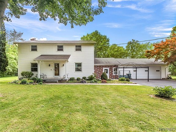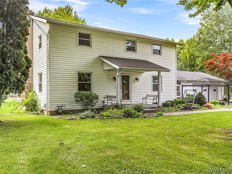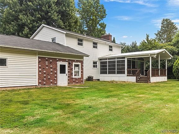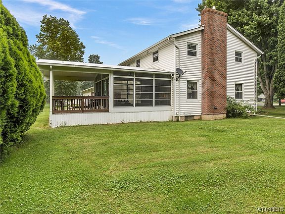 Charming country home on over 2 acres in Ransomville. You'll love hosting family gatherings in this generous sized updated farmhouse kitchen highlighted with glass front cabinetry, a breakfast bar, and built in window seat. Warm and welcoming, the family room is anchored by a brick fireplace with gas insert and hardwood floors. Enjoy the summer breeze from the back patio overlooking the tranquil backyard, connected to the home by a bonus 3 season room. One full bath on the first floor, another on the second along with 4 nicely sized bedrooms. Bonus room is perfect for a gym, crafting or putting together puzzles! Full basement with loads of storage, 2 car garage and additional shed. Just a short drive to Lockport, Lewiston, Niagara Falls and Lake Ontario. This home is just waiting for you to make it your own!