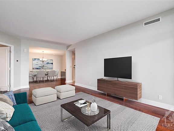 Enjoy west-facing Rideau River views from this luxurious 2-bedroom residence in prestigious Riverside Gate. The spacious living rm with hardwood floors & ample natural light is perfect for entertaining. A wall of glass offers views & access to a balcony. For formal gatherings, the elegant dining rm has recessed lighting inviting memories to be made with family & friends. The kitchen has exquisite wood cabinets, granite counters, a backsplash, breakfast bar & recessed lighting. A breakfast rm offers the perfect spot for morning coffee overlooking the water. The views are beautiful from the primary bedroom with hardwood floors, walk-in closet & sumptuous 5-piece ensuite with soaking tub. For privacy the 2nd bedroom is located on the other side of the residence & is adjacent to a bath, plus there is a full size-laundry room with ample storage. Live the good life with amenities that include a gatehouse, concierge, tennis courts, exercise room, indoor pool, guest suite & heated parking.