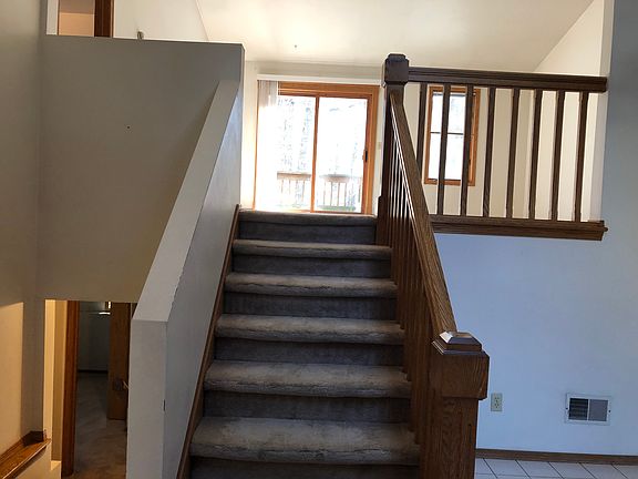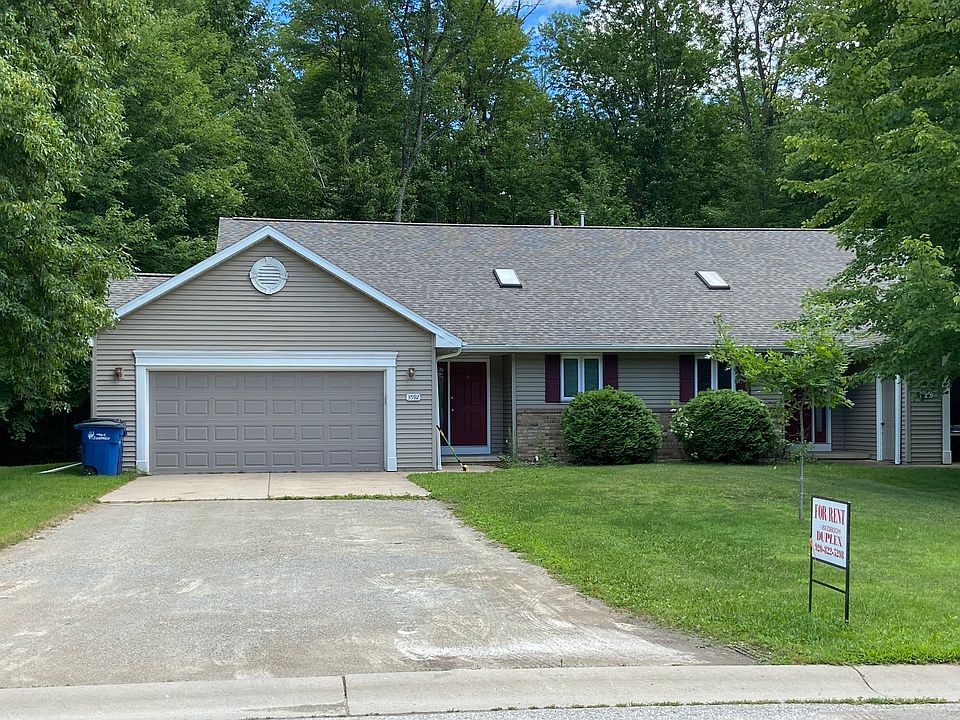 Tri level duplex. 3 bedrooms with one upstairs and 2 downstairs. Master bedroom has full bathroom. Another in lower level. Gas fireplace, central air, stove, refrigerator dishwasher. All blinds. Large extra deep garage. 2 car insulated garage. 1550 sq ft. 4' high storage space. Laundry room. Spacious shelved closets. Quiet and private lot. Lot backs up to conservancy. Deck in back. Wooded. Tenant pays all utilities. Tenant does own lawn care and snow removal. Availabile October or November. Flexible move in Shorter term lease possible. . Unit available is on the right.