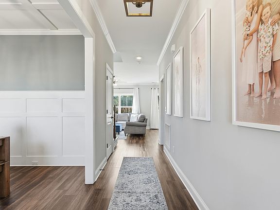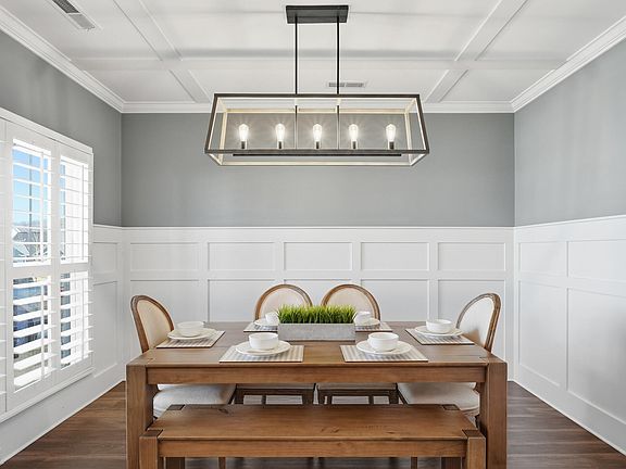 Just inside the front door, a formal dining room can also serve as a home office or flex space. The open concept living room features a gas fireplace and plenty of space for a sectional. The bright, open kitchen offers abundant natural light, and has a natural gas range and pot filler over the stove.