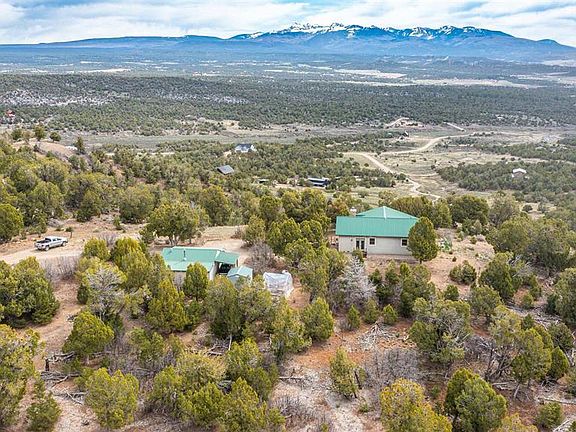 Beautifully maintained home with spectacular views of the La Plata Mountains, Mesa Verdi and the surrounding valleys. Hardwood floors, custom oak cabinets, 10 ' high ceilings throughout the home. Custom kitchen features like a commercial grade double refrigerator/freezer, double gas oven/range. A kitchen sink over looking the La Plata Mountains with a second vegi sink in the kitchen island. Granite tile counter tops. Butler style pantry off the kitchen. The fireplace hearth in the living room is set up with custom tiles and tile work. The fireplace has a thermostatically controlled fan. Over sized windows and doors in the home to maximize the views of the surrounding countryside. This home lies at the end of the road to help provide ultimate privacy in this Pinon Pine and Cedar forested homesite. Enjoy the privacy and views from a classic flagstone patio. On the south side of the home is a covered porch with room for you grill for outdoor cooking enjoyment. To help maintain your privacy when company arrives there is a guest house with its own kitchenette so you can shuffle the guests too. Behind the guest house is a shop area to store your tools and work on your projects.