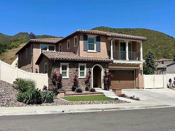 Welcome to one of the largest homes in the Promontory neighborhood of Horse Creek Ridge. This expansive 3,844 sq ft residence offers 5 bedrooms, including 4 with ensuite baths, 6 bathrooms, a spacious upstairs loft, and thoughtful upgrades throughout. Inside, the gourmet kitchen features GE and Café appliances, quartz counters, custom cabinetry, a stylish backsplash, and a butler’s pantry — perfect for everyday meals and entertaining. The open-concept family room with fireplace flows into the large dining space, while luxury vinyl plank flooring and plantation shutters add elegance throughout the first floor. This home also comes with a fully paid 5kW solar system, a two-car garage with tandem space, and rare expanded parking behind a fenced area along with a three-car driveway. Step outside to a private courtyard, drought-tolerant landscaping, and a custom putting green — an entertainer’s dream and golfer’s delight. Living in Horse Creek Ridge means enjoying 7 private parks, a clubhouse with pool and spa, nearby hiking trails including the Monserrat Mountain Trailhead, and a true community feel. With easy I-15 access, you’re just minutes from Fallbrook, Bonsall, and Temecula. Don’t miss this opportunity to own one of the premier homes in Horse Creek Ridge.