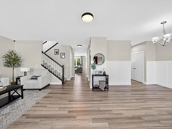 Welcome to this beautifully designed 2-story home located in the desirable Bowes Creek Golf Course community of Elgin. Newly built, this modern residence offers the perfect blend of style, space, and comfort. Step inside to find an open and airy layout featuring 4 spacious bedrooms and 2.5 baths. The heart of the home boasts a modern kitchen with tons of sleek cabinetry, stainless steel appliances, and an extra large island perfect for meal preparation and entertainment. The kitchen is modern in every way and even has a double french door pantry. This amazing kitchen has a separate eat in area with a beautiful view of the backyard and beyond. These rooms flow seamlessly into the family room which is perfect for everyday living. The main floor also includes a separate living room and dining room area and large foyer with half bath. Upstairs, the private owner's suite offers a spa-like bath and generous walk-in closet, while three additional bedrooms provide flexibility for family, guest, or a home office. Enjoy the fenced in yard perfect for bbqs and enjoying the outdoors. This home doesn't back up to another home adding more privacy and natural setting. Located within the sought after Bowes Creek Golf Course Community, residents enjoy access to the golf course, an on-site restaurant, and minutes away from 1-90, downtown St. Charles, train station, restaurants, and shopping. Schedule a tour today to see this move-in ready home and all it has to offer! Features: everything only 3 years old, fully fenced yard, hardy board siding, exterior lights and cameras, EV ready wiring, under cabinet lighting, custom wainscoting in foyer dining room and bedroom, custom heavy weight doors with high end fixtures, and full unfinished basement.