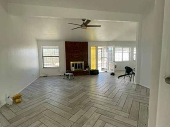 As you walk in, you'll see a large living room with vaulted ceilings and fireplace!