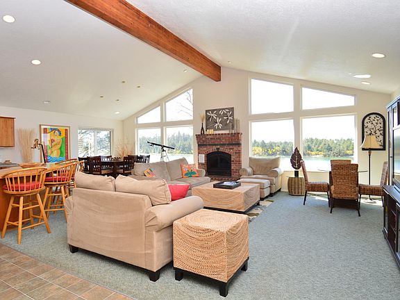 Beautiful custom riverfront home with spectacular river view and untouched natural Bob Straub State Park area beyond. Serene setting where river wildlife abounds! Great room with wall of windows and spacious wrap-around deck to enjoy the view. Huge garage has ample space for vehicles and boats with room to spare. Quiet location is just a few minute drive to beaches, restaurants, galleries, etc.