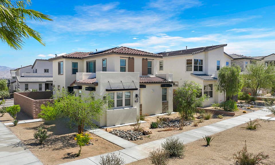Residence 1X is located in the Verve neighborhood of University Park in Palm Desert and offers a stylish, low-maintenance lifestyle with an alley entrance that adds great curb appeal. This two-story home features an open-concept layout where the kitchen flows seamlessly into the living and dining areas, with optional multi-stack sliding doors to create a true indoor/outdoor living experience. Upgrades include quartz countertops, large format tile flooring downstairs and in all wet areas, full plantation shutters throughout, and paid solar. A loft and separate cabana/game room provide flexible space for work or play, and the detached bonus room is perfect for a gym, office, or guest space. The backyard is fully landscaped with artificial turf, making it both functional and easy to care for.