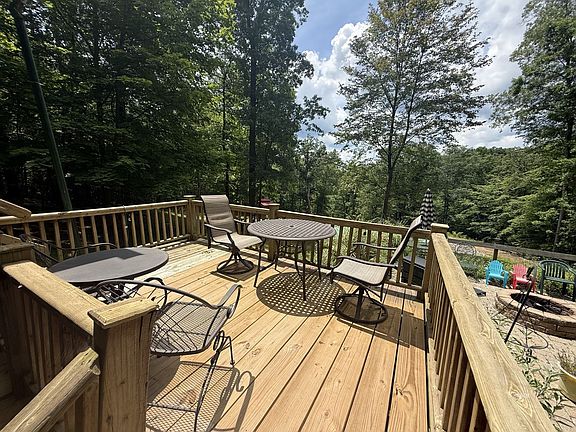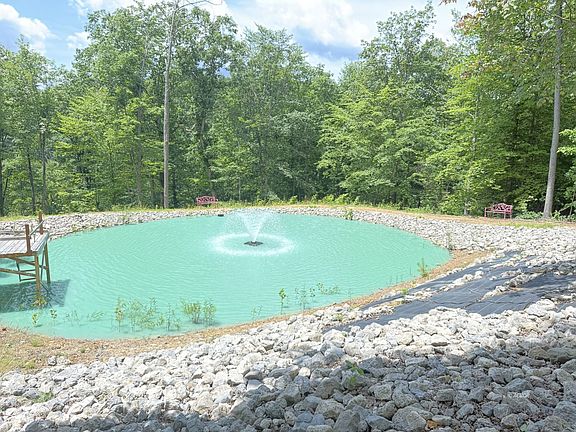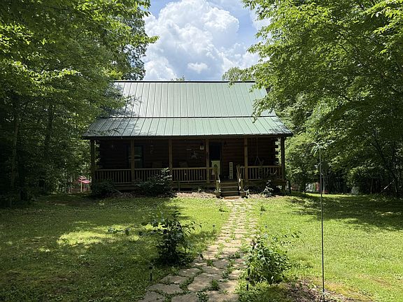Looking for a getaway or a home that is your getaway?. This is a unique property that features a well maintained & cozy cabin with loft & full walkout basement situated on 9.32 acres m/l. There are two bedrooms on the main floor, & a loft that can host sleeping as a third bedroom. All three floors have a full bathroom available. The great room host a family area with woodburning fireplace, dining area, & kitchen, of which appliances stay. This home features covered front & back porches, & a deck accessed from the back porch off the kitchen or from the basement. There is also a nice patio area with firepit overlooking a 1/4 acre pond (about 7 1/2 ft deep) stocked with a dock, pavilion, & fountain/aerator. There are numerous herbs and fruit growing, including elderberry, blackberry, black raspberry, & a kiwi vine. There are walking trails, easily marked boundary lines, & beautiful trees/timber. There is a new well pump (2025), pressure tank and switch replaced (2024). Water heater (2020) is 50 gallon/electric. There is an option to remain furnished. It is currently being used as an AirBnB. This home & property can be your getaway, your home, or an option for business income as an AirBnB. Do not miss out on this opportunity.