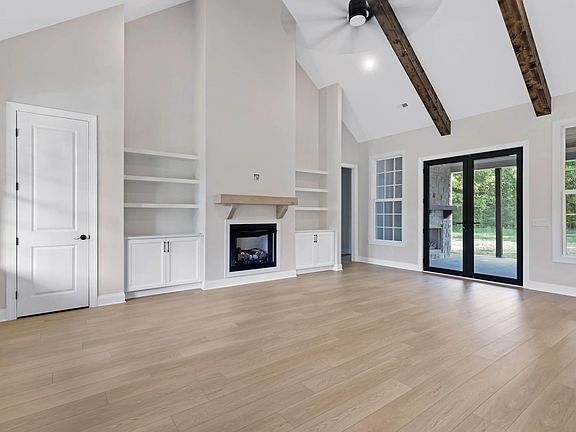 This gorgeous home glows warmly with soft lighting from within, casting a welcoming aura that mirrors the peace and harmony of its natural surroundings. This spacious retreat on two acres is not just a residence but a sanctuary—a place where modern comfort meets timeless beauty, and where the joys of country living could be embraced fully, creating lasting memories for generations to come. The spacious living area is bathed in natural light from expansive windows that overlooked the exterior countryside. You will be delighted with custom built-in cabinets surrounding the beautiful fireplace, decorative ceiling beams, custom accent walls, and amazing fixtures chosen by our designer. High end appliances, gleaming quartz countertops, and custom cabinetry make this kitchen a delightful place to spend time entertaining family and friends. This masterpiece of design and comfort has been meticulously crafted to cater to your every desire.