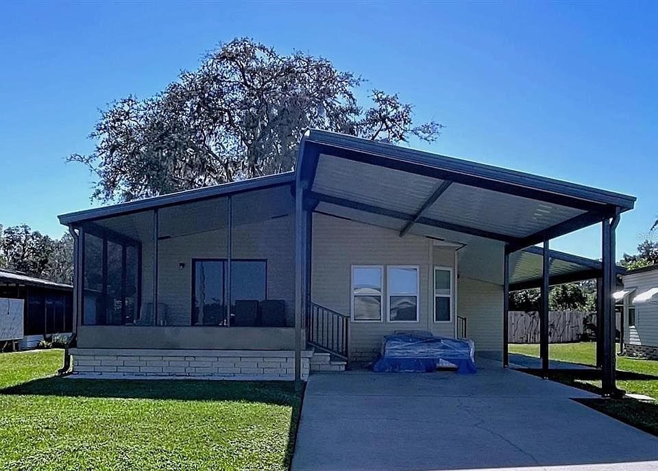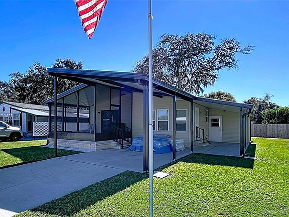 Welcome Home to this beautifully updated 2-bedroom, 2-bath double-wide manufactured home located in the desirable Casa Del Sol 55+ community in Zephyrhills. This spacious residence features a BRAND-NEW rubber membrane Roof (4/25) and an open floor plan with combined living and dining areas, creating a bright and welcoming atmosphere. The updated kitchen offers ample cabinet storage, new appliances, stunning subway tile backsplash, breakfast bar, and an adjacent dining nook. New Luxury Vinyl Plank flooring also encompasses the kitchen and bathrooms. The primary suite includes a walk-in closet and a private en-suite bath with a walk-in shower. The secondary bedroom provides flexibility for guests, a home office, or hobbies. The second full bath has been updated with modern fixtures and new walk-in shower. Don't forget about the attractive and spacious screened in patio, great for entertaining guests or just having a pleasant afternoon reading a book while enjoying Florida's beautiful weather. Exterior features also include a utility shed/workshop for storage or crafts which includes a washer and dryer, and a covered carport with parking for two vehicles. Plus, you’ll love the spacious backyard — it offers ample room to relax or entertain, with no rear neighbors and a privacy fence across the back for added tranquility. Finally, there is added comfort with a resent clean 4-point and engineering inspection. AC 2019 Casa Del Sol is an active 55+ community offering a pool, clubhouse, and a variety of social activities. Conveniently located near shopping, dining, and medical facilities, this home provides a comfortable and low-maintenance lifestyle in a well-established community