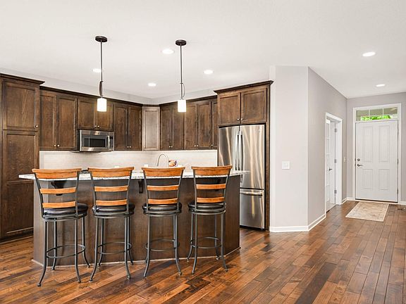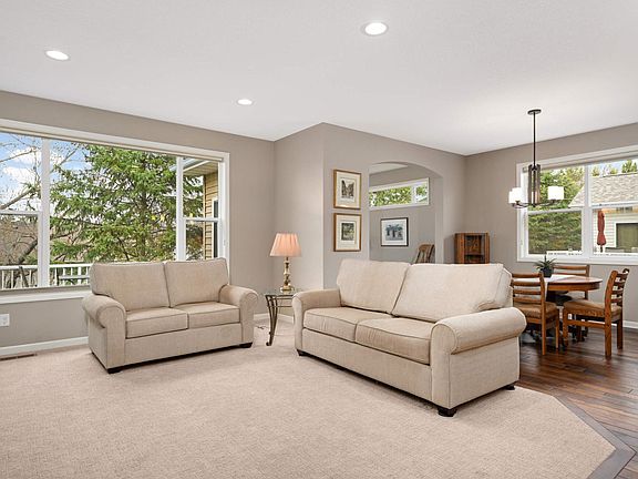 Fantastic Town Home in Eagan. This home shows like a model home. There are three bedrooms, three bathrooms, and a 3-car attached garage. Open floor plan with the living room, kitchen, eating area, and four-season porch with a deck off the back of the home. There is a office, den on the main floor right by the front door with French double doors. The primary bedroom is on the main floor with a large walk in closet and primary bathroom with double sinks. The bathroom also has a separate shower and soaking tub. The lower level has two bedrooms, bathroom, family room and large unfinished storage area. The lower level is a walk out lower level with lots of natural sun light to come into the home. This property is very clean and the main floor has been freshly painted.