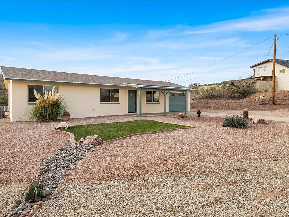 Don t miss the remodeled/updated 3 bed/2 bath home that sits on 1/2 acre in town! Freshly painted inside and out, with brand new carpet, new blinds, double pane windows, cultured marble bathrooms, kitchen has maple wood cabinets with granite and backsplash, landscaped front yard, all appliances with washer and dryer are included. This property is open in the back straight into trails for walking or desert rides.