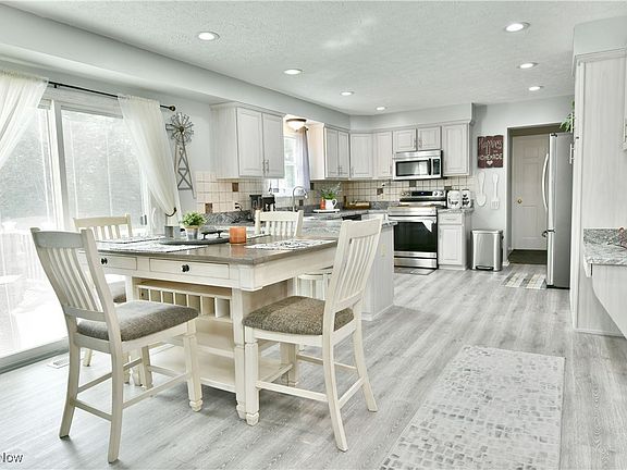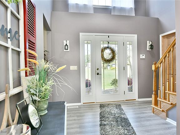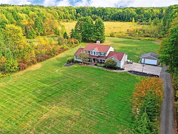 It’s finally here, you’ve found THE ONE. Immerse yourself in three floors of stunning living space as you explore this exciting residence! This spectacular home sits far off the road on an expansive 3-acre, semi-rural lot where it exudes style, wrapped in manicured landscaping and presenting its impressive covered front porch. A two-car attached garage joins a second, detached garage that brings the total to four. Meanwhile, around the back, the elevated composite deck overlooks a massive stone patio area with its crackling fire pit. Through the decorative front door, the prominent two-story foyer yields an elaborate staircase that leads up towards the second story guest bedrooms and a large landing. Down below, the short hall transcends formal dining as the rear of the home opens to reveal a great-room style of kitchen, dining, and living room space within its hall-like layout. Brand new ash colored cabinets line the custom kitchen with its stone-look countertops and bright stainless appliances. Sunshine pours in to illuminate casual dining area as the carpeted great room looks on with its tall ceiling and towering side windows that bolster the fireplace. Just past the kitchen, a lovely half bath accompanies first floor laundry, and a backyard walk-out. Barn doors partition off a relaxing parlor, currently configured as a home office. Finishing the floor, be swept away in the elegance of the oversized master bedroom suite and its remarkable full bath with a pillar-lined tub and custom tiled shower. On the second floor, three colorful bedrooms are joined by an additional full bath and its shiplap styling. Each of the bedrooms are nicely sized and offer great closet space. The basement level features a completed rec room and offers ample storage space. Updates include: roof ~2019, vinyl replacement windows ~2009, furnace & AC ~2009, HWT ~2019, rear deck 2023, rec room 2022, and so much more! Plus a one-year home warranty!