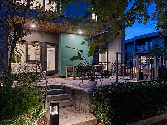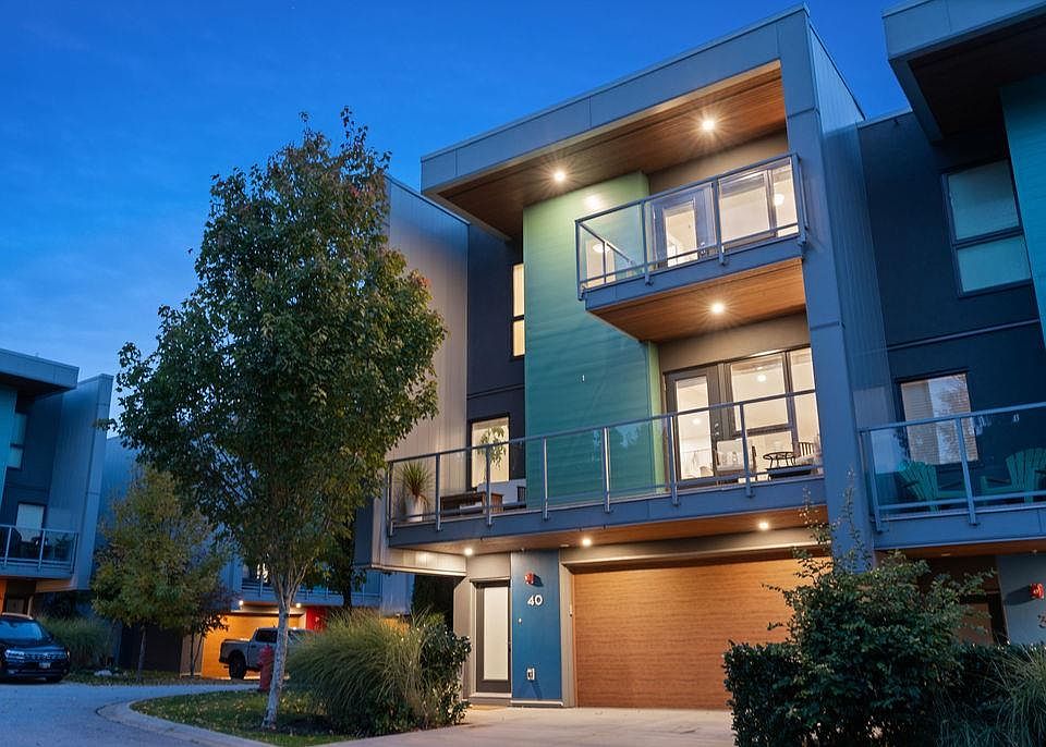 End-unit townhome in Seymour Village 2 at Ravenwoods offering 3 bedrooms, 2.5 bathrooms, multiple spacious patios, private side-by-side 2 car garage and parking for 4 vehicles! This like-new home was built in 2019 and offers modern finishings and conveniences such as forced air heating and AIR CONDITIONING, spacious entertaining space, a private outlook onto the communal green space and lots of sun through your bright west exposure. Up, find three large bedrooms including the primary with private ensuite, large walk in closet and private patio. Two other bedrooms and a full bathroom offer room to grow. The main level with chefs kitchen includes gas range, large island and space to entertain! The recently updated rear patio if perfect for outdoor dining. Ask about owner upgrade + amenities!