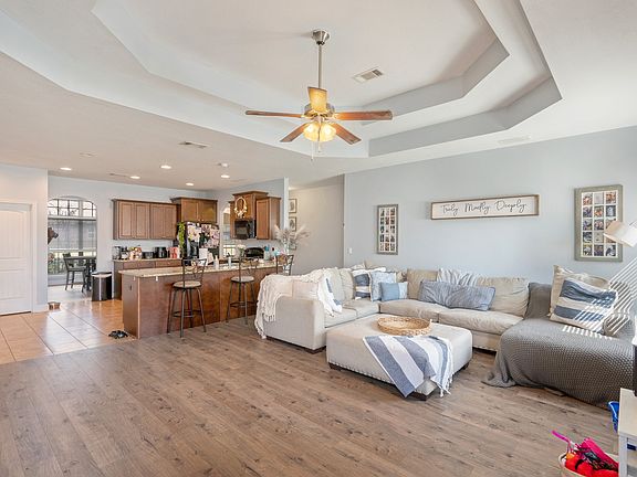 This beautiful 3-bedroom home offers an additional bonus office space and a thoughtfully designed layout with high-end finishes. High ceilings, wood-look LPV flooring, crown molding, and trey ceilings add a touch of elegance, while granite countertops and ceiling fans throughout enhance comfort and style.