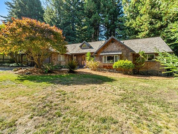 Surrounded by towering redwoods, this property offers ultimate privacy and tranquility. The low-maintenance landscaping blends seamlessly with the natural environment, providing beauty without the upkeep. The oversized 2-car garage includes a spacious attached shop, offering plenty of room for hobbies, storage, or workspace.