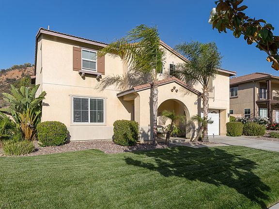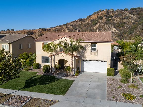 NEW PRICE! Views and Privacy abound in this popular nature surrounded quiet community of Orchard Glen, tucked into the hillside of the Cleveland national forest. Mountains and City lights views. Walk to the famous "skyline" hiking trails. Centex built Spanish style beauty. LOW TAXES and NO MELLO ROOSE. 3155 sq. ft, 4 Bedrooms & 3.5 Baths, 3 car tandem Garage. Granite kitchen counter, Stainless steel appliances. Whole house water softener and water purification system. One year old water heater. New carpet and tile downstairs. Tile and wood flooring upstairs. FULLY PAID 3.5 KW solar panel system saves a ton on electric bills. Minutes to the 91 freeway via newly built foothill extension. Superb schools, shopping. Grab it before its too late.