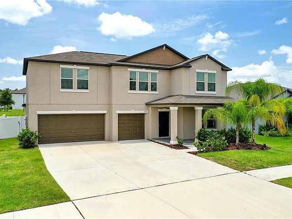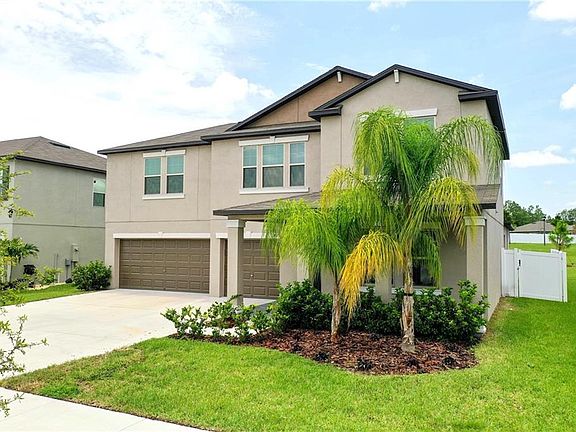 Why wait to build? Beautiful virtually new 3255 Sq Ft 5 bedroom, 3.5 Bath, 3 car garage home has it all and is waiting for its new family! As you enter the foyer, you will notice the spacious open floor plan This floor plan is perfect for family gatherings and entertaining with its large LIVING ROOM, open KITCHEN and open DINING ROOM and a half bath for guests. The KITCHEN offers a sleek appliance package, a gorgeous back splash, a HUGE closet pantry, a center island/breakfast bar, and staggered raised panel cabinets. The LIVING ROOM features sliding doors to the fully PVC fenced in backyard, perfect for barbecues and parties! The first floor also offers a large EN SUITE MASTER BEDROOM, with a huge walk-in closet! The MASTER BATHROOM has dual sinks and a built in vanity with lots of counter space, and a stall shower. As you walk up to the second floor, you are greeted with a BONUS ROOM, perfect as a second living room, office, play area or den. The second floor also contains four generous-sized bedrooms with large closets, and a bathroom with dual sinks with a separate room featuring a large upgraded-tiled tub/shower! This is the perfect family-friendly neighborhood with Resort Style Pool and Clubhouse, Dog Park, Nature and Walking Trails and a shaded tot lot! HOA includes cable and internet! Great location with access to I-75, SR 54, SR 56, Morris Bridge Road, lots of restaurants, medical facilities, Wiregrass Mall, Tampa Premium Outlets with tons of shopping! Call today for your Private showing! (BACK ON MARKET DUE TO PREVIOUS BUYERS FINANCING FALLING THROUGH!)