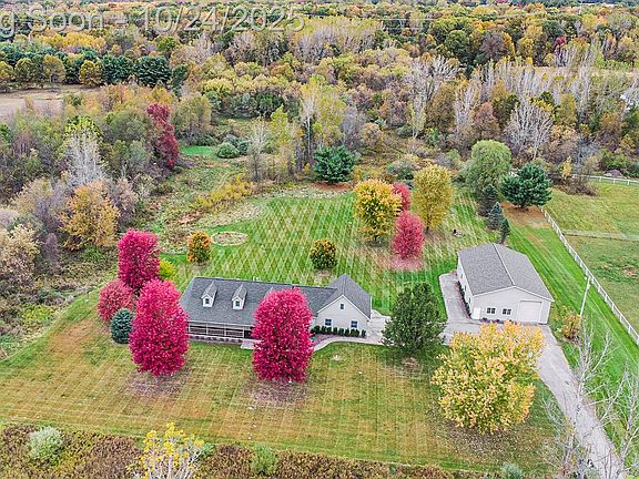 Welcome to your charming 2,114 sq ft ranch home, nestled on over 10 acres, offers a peaceful, rural setting within the desirable Fowlerville School District. This property is an incredible value, offering so much for the discerning homeowner. Step inside to discover a beautifully updated home featuring three cozy bedrooms, two full bathrooms, a spacious great room, a welcoming kitchen with a breakfast nook, and a formal dining room. Gather around the stone fireplace for warm evenings. Recent improvements include fresh interior & exterior paint, new light fixtures, and plush carpeting throughout, ensuring a move-in-ready experience.The property also includes a large 24x27 ft attached garage with a cement floor, insulation, drywall, power, and a garage door opener, all serviced by a 200 amp electrical panel. Outside, you'll find a fantastic 40x60 pole barn with a concrete floor, power, and a brand-new roof. It boasts two convenient overhead doors (9x8 ft on the side and 12x14 ft in the front) and five recently replaced 4x4 ft white vinyl slider windows, perfect for any hobby or storage needs. The home is set back from the road, surrounded by lush foliage, providing a quiet and serene atmosphere. Prepare to be amazed by the abundant wildlife! With over 10 acres, the possibilities are endless – imagine horses, small farming, or additional outbuildings. Don't miss this incredible opportunity to own a piece of paradise. Call or schedule your showing appointment today and start envisioning your new life here!