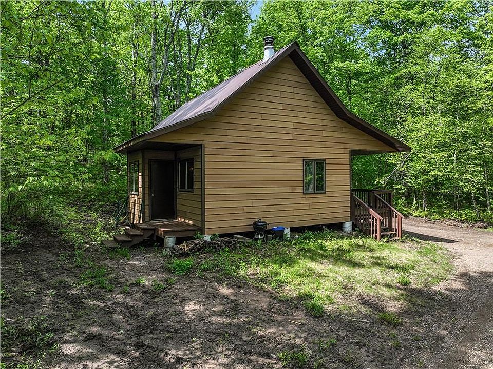 Location, affordability & privacy combine to make this off grid cabin on over 45 acres a must see! The cabin has the "Up North" hunting or vacation cabin feel you're looking for & is clean & cozy. The woodburning fireplace will heat the cabin nicely, but there are 2 LP gas wall heaters as well. There is a large bedroom on the main floor, plus a loft bedroom. There are LP gas lights, oven/range, & water heater (for showering). There is a composting toilet. Outside your door, there is much to explore! At certain times of the year, a small creek runs through the property & the land is wooded & almost entirely high ground & full of deer sign. In the NE corner of the back 40, there is another rustic cabin for your enjoyment. Located only 10 minutes from Winter but VERY private & right on the ATV trail, this cabin and property are a true gem! There is no well, septic or electric at this time. Quote to add electric is about $11k. Furnishings & household supplies included.
