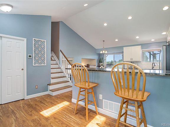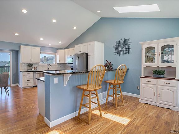 Welcome to your charming suburban retreat! Nestled in a peaceful neighborhood and the coveted Cherry Creek School District, this beautifully updated three bedroom, three bathroom home offers the perfect blend of comfort and convenience. Upon entry one is greeted with an amazing, completely updated Chef's kitchen boasting an abundance of new cabinets, soft close drawers and drawers, quartz counters, stainless appliances, wood look, luxury vinyl plank flooring, and ample bar seating. In addition to the bar seating, there is a dining area in the kitchen which has access to a spacious, covered deck for extended outdoor living. Step down into the family room which beckons you to unwind by the wood burning, brick fireplace on cool Colorado evenings or gather with loved ones for movie nights. A convenient powder bath is also found on this level. Tranquility awaits upstairs in the primary suite featuring an expansive walk-in closet, vaulted ceilings, and a completely updated primary bath sporting a beautiful dual vanity, custom tile work, and a large, walk-in shower. An additional bedroom and office area offers versatility for the owner or guests to fit their lifestyle needs. Descend into the basement to find the third, conforming bedroom or great room with a second full, updated bath complete with custom tile flooring and tub surround. The laundry room also resides on this level and the washer and dryer are included with the home. Enjoy the privacy and peacefulness of the back deck and yard which look out over an expansive open space. Store all your lawn and garden equipment in the included, backyard shed. The two car attached garage features some shelving and cabinetry for additional storage and ample room for two cars. Conveniently located near parks, schools and shopping centers with easy access to E470, this location can't be beat. Finally, the home just received a brand new roof!