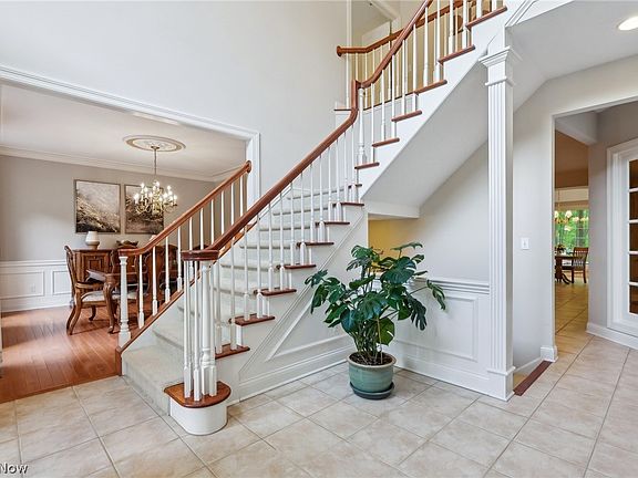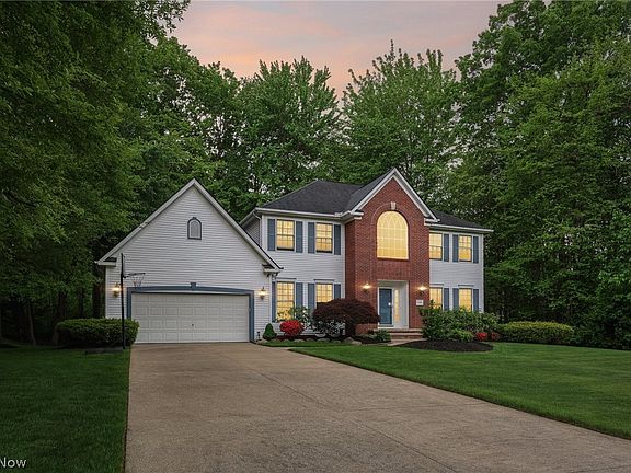 Fabulous former model home situated on a beautiful, wooded ½ acre lot in this highly sought after, Timber Trail neighborhood in Solon! Beautiful recent updates, exquisite architectural details and loaded with upgrades. The inviting two-story features soaring ceilings, handsome staircase, ceramic tile, custom moldings and lovely art niches. Beautiful newer hardwood floors in the LR, DR and Family Room. The convenient front room with crown molding is perfect for home office, den or living room with French doors that open to the spacious family room with coffered ceiling, marble gas fireplace and floor to ceiling windows. Elegant formal dining room with crown moldings and wainscoting. The large kitchen features Merillat cabinets, granite countertops, center island with breakfast bar, fabulous walk-in pantry, and SS appliances including a convection oven and Bosch dishwasher. Off the kitchen you will find a sun filled morning room/dinette area with tons of windows and sliding doors with amazing views of the deck and wooded backyard. Convenient laundry and powder room complete the first floor. The Owner's suite is amazing with large walk-in closet with built-ins and door leading to the partially finished attic with tons more storage. The spacious glam master bathroom features two separate vanities, granite countertops, architectural arch and bay window, jetted tub and walk-in shower. 3 additional good-sized bedrooms and 2nd full bathroom with skylights. Amazing storage and closets throughout. Full finished lower level with glass block windows, full bathroom, huge recreation room, media/theater room and bonus room/office, wet bar etc. New hot water tank in 2024. New window blinds in 2024. Oversized garage with tons of storage. Large deck with built-in benches and plant hangers, surrounded by woods with lots of privacy. Professionally landscaped yard with sprinkler system. Schedule you're showing today.