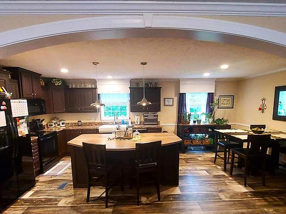 A spacious and pristine home nestled back on 15+acres of mostly wooded acreage, to which you arrive by meandering along a secluded driveway. Enjoy the constant sightings of wildlife that share this lovely yard space with you. Interior features of this home include a large kitchen with an expansive angled island and that extra storage that we all love; vaulted ceilings in the kitchen/living area; a dining area adjacent to the kitchen; a separate den down the hall for individual privacy (currently being used as a pantry/cellar); a Master bedroom suite with walk in closet and a modern master bathroom with a huge 4'x6' step-in shower with glass wall, plus another walk in closet and linen closet; two nice-sized secondary bedrooms; and the exceptional utility/mudroom at the side door entrance with W/D, refrigerator, large sink, and even more storage to accommodate your lifestyle, and those beautiful custom built designer window boxes in the living room and Master bedroom. Exterior features include the large gambrel roof detached building with loft storage is ideal for your mower, tools, supplies, etc; and the adjacent pumphouse building also houses the water softener and salt materials. If you like gardening and that mini-farm feel, the blue barrel garden beds convey as well as the chicken coop. Even the chickens are negotiable if you want to get a good head start. Sellers will pay up to $800 toward Buyer Home Warranty. Don't let this one slip away!