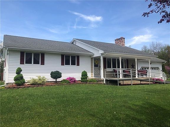 Meticulous, one owner ranch home with a manicured 2.50 acre lot around the house and an amazing 18 acres of woods in your back yard!! The 24x42 three car detached garage with an extended driveway is a car lover's dream! One bay is closed off for painting vehicles, and there is a propane heater to heat the garage. The covered front porch provides a welcoming entrance to your guests with lovely landscaping around the house. The 22x13 living room is highlighted by the gorgeous brick fireplace and the large bay window to let the natural light stream in. The 20x13 eat in kitchen has tons of counter and cabinet space with a breakfast bar and looks out over your private backyard. 3 nice sized bedrooms and 2 full baths complete the main level. The covered back deck is made of composite material and vinyl railing. The full, dry basement has 12 course blocks to finish as you please! Paved driveway with turnaround, a huge shed, 2 car attached garage, newer roof and Franklin SD. Welcome home!