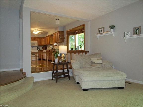This spectacular 5 BR 2.5 BTH center-hall colonial exudes a subtle, charming elegance while maintaining an essence of the traditional! A breezy, covered front porch is set back upon a grassy front lawn & a cobblestone drive w/turnaround & entry providing captivating curb appeal! Freshly painted throughout in today's colors! Enormous formal living/dining room combo is dinner-party perfect! Sunlit eat-in kitchen w/bay window has ample cupboards & granite countertops... overlooking the sunken family room. Cozy white brick faced, wood-burning fireplace enhanced w/built-ins and slider to back yard. Newly replaced carpet on the entire 2nd level where you will find a contemporary owners suite w/newer skylight, walk-in closet & private owner's bath. 4 more sizable bedrooms, guest bath & utility room! Plenty of room for kids & pets to play in the nearly 1/2 acre freshly landscaped, fully fenced yard! Relax after a long day under the covered patio or chill with friends by the newly-built cobblestone firepit! Unfinished basement has plenty of storage & houses the laundry/2nd HVAC. Attached 2-car garage has additional overhead storage! Newer: 1 Furn & CAIR, all ceiling fans, garage door opener & unit, shower heads, light fixtures in & out, 2nd sump pump & battery back-up! Shopping nearby!! Convenient to I-90, Turnpike & I-480!! Minutes to Schwartz Road Park & Miller Preserve!