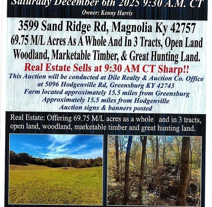 LAND BUYING AUCTION- Dec. 6th at 9:30CT 70 acres+/- SOLD as a Whole and in 3 tracts Tract #1-20.98acres Tract #2-30.87acres Tract #3-17.90acres