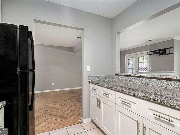 Lease Purchase with no rental restrictions. This beautifully renovated, ground-floor end unit condo is conveniently situated in the heart of Tucker, with double French doors to a private patio. The spacious living area features an open floor plan with a view from the kitchen to the living room. The kitchen has newer white cabinetry, granite countertops, newer appliances, and a large stainless steel sink. Spa-like tiled walk-in showers w/ADA bars in updated bathrooms. Flex space off kitchen can be used for large walk-in pantry or office area. Newer herringbone flooring, and modern light fixtures that provide a stylish and contemporary feel. You'll find an array of shopping centers and restaurants within close proximity. I-85 and I-285 are nearby, making it ideal for those working in Atlanta or other surrounding areas. Gas is included in the HOA!