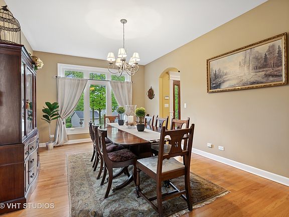 Gorgeous brick home on 2/3 acre in Fox River Heights! This one-owner 2267 sq. ft. home was built in 2003 and meticulously cared for through the years. It is distinguished through exclusive architectural details such as arched doorways, expansive picture window and cathedral ceiling in family room and tray ceilings in bedrooms. and gleaming hardwood floors throughout the main floor. Enjoy being surrounded by nature and great views from every window! Elegant kitchen boasts gorgeous cranberry-colored maple cabinets, new double oven and new dishwasher, granite countertops and eating area over-looking the paver patio and lush landscaping. The kitchen opens to the vaulted family room with fireplace and views of the wooded yard. Homeowner has switched dining room and living room to create an expansive formal eating area for family and friends, leaving the dining room to act as a cozy den or office. The second floor has brand new hardwood hallway and brand new carpet in every bedroom. Bedroom #2 presents with 2 closets, and bedroom #3 also has a walk-in closet. Finished basement provides extra living space for recreation and lounging. And the yard! Over a half acre of mature trees and landscaping, the home is perched on it's own little block facing the Fox River, which is just a short block away! Paver patio with built-in firepit. Two AC's, two furnaces, two hot water heaters! Walk to grade school! This home will be featured on an upcoming episode of HDTV's House Hunters! Come take a look you won't want to leave!